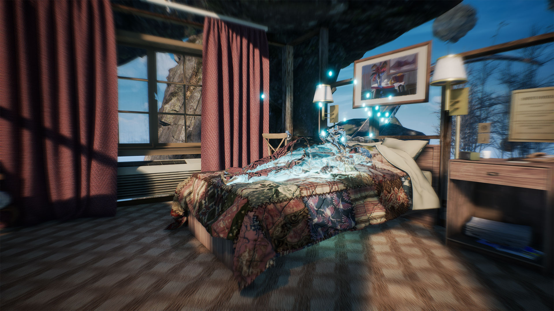 Mais l’esprit de Sam est un endroit merveilleux et mystérieux. Le double, également révélé aujourd’hui, constitue un autre élément clé de Twin Mirror. La petite voix intérieure de Sam est une version chic et sarcastique de lui-même. Est-elle là pour l’aider ? Pour entraver sa progression ? Les joueurs devront le découvrir par eux-mêmes tandis qu’ils avancent dans l’histoire, faisant leurs choix en se basant sur la personnalité de Sam et les indications excentriques du double.