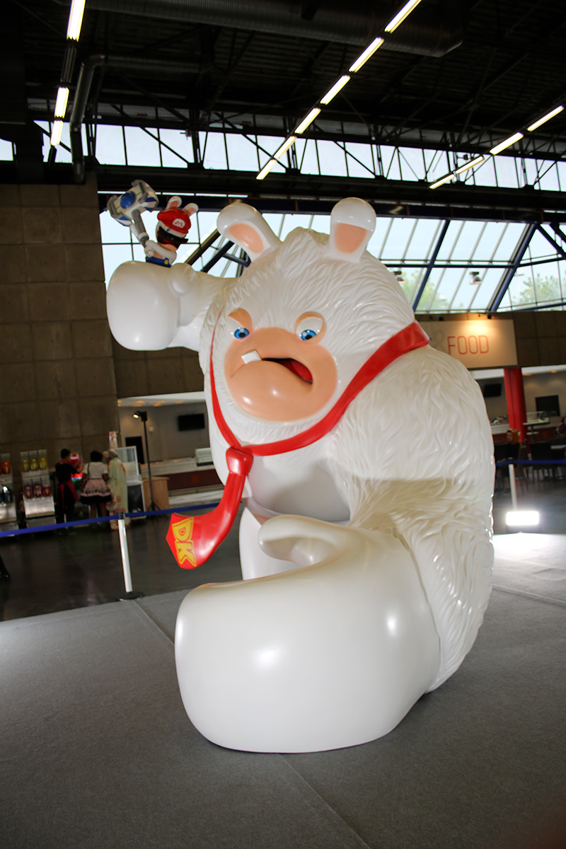 Ubisoft était présent avec une scène Just Dance 2018, quelques bornes Mario + The Lapins Crétins: Kingdom Battle, une boutique Ubicollectible et une énooorme Lapin crétin en guise de star du stand.