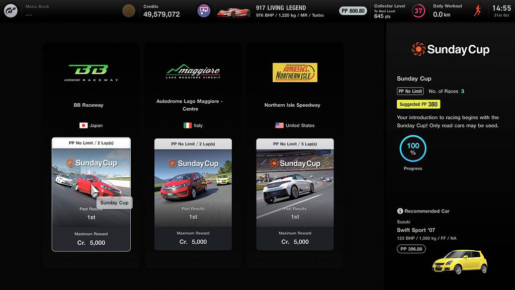 - Menu supplémentaire n°31 : “Sportives homologuées pour la route” (niveau de collectionneur 30 et plus)