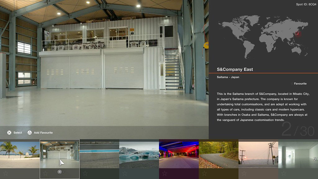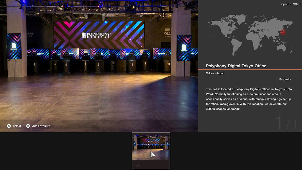 “Coups de cœur du joueur” (les 30 lieux les plus populaires) a été ajouté à Scapes. En plus, pour fêter l’ajout du 3 000e lieu dans Scapes, “Polyphony Digital Tokyo Studio” a été ajouté.