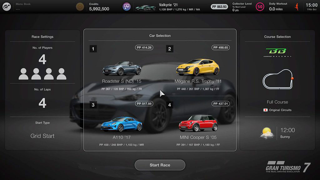 Affrontez Gran Turismo Sophy sur la version PS5. Préparez rapidement et facilement une course avec “Course rapide”.