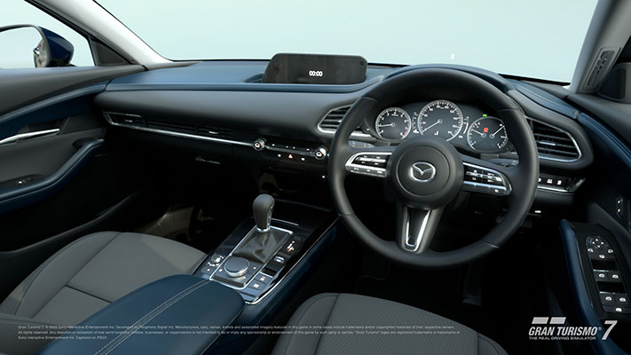 En plein essor du SUV dans les années 2010, Mazda a présenté ses modèles CX-3 et CX-5, avec une énorme différence de gabarit entre les deux. Le crossover SUV CX-30 a été conçu dans le but de combler l’écart entre le CX-3 et le CX-5. Bien qu’il soit relativement compact avec ses 4 395 mm de longueur pour 1 795 mm de largeur et 1 540 mm de hauteur, le CX-30 affiche l’esthétique fluide et simple de la philosophie du design Kodo de Mazda. Sur le masque avant, l’aile caractéristique s’étend sur les côtés et fait la jonction entre les phares gauche et droit, tandis que l’ondulation sur les côtés de la carrosserie reflète magnifiquement la lumière. Le modèle est disponible en trois motorisations : le moteur essence SKYACTIV-G à injection directe de 2 litres, le moteur diesel SKYACTIV-D à injection directe de 1,8 litre, et le moteur essence SKYACTIV-X à injection directe de 2 litres qui utilise un système de combustion spontanée appelé SPCCI. La finition « CX-30 X Smart Edition » que vous voyez ici a été présentée en 2021, sur la base du modèle « SKYACTIV-X ». L’un des principaux arguments de vente de ce modèle est la richesse des équipements d’aide à la conduite inclus de série, comme l’affichage tête haute qui projette des informations sur le pare-brise, et le système d’aide au freinage intelligent SBS. Le lancement de ce modèle a également permis d’apporter des améliorations au système SKYACTIV-X en lui-même, les modèles automatiques bénéficiant d’une résistance plus importante de la pédale d’accélérateur pour améliorer les sensations de conduite.