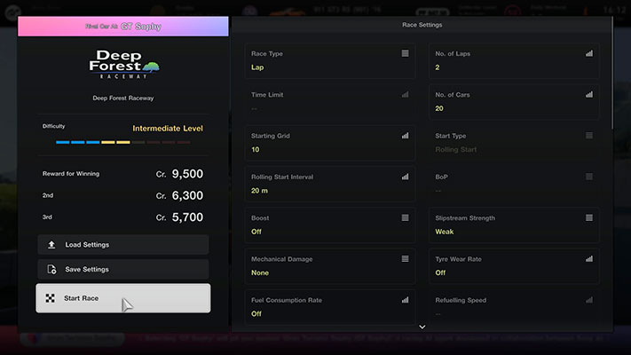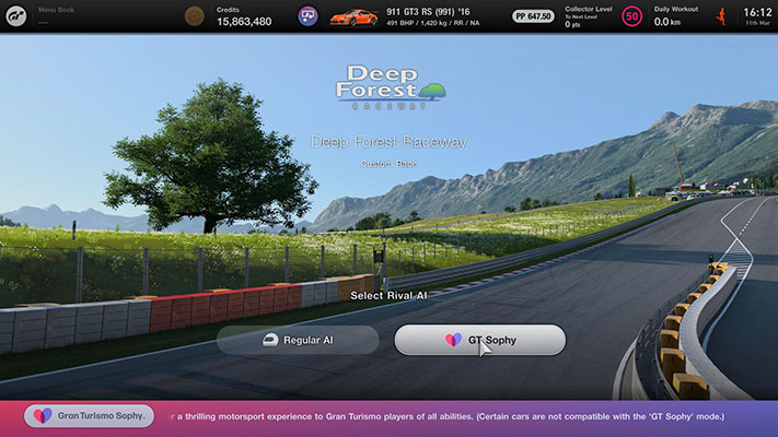 Vous pouvez désormais sélectionner « GT Sophy » dans les Voitures rivales des Courses personnalisées sur tous les circuits et tracés pouvant accueillir GT Sophy dans Circuits mondiaux.
