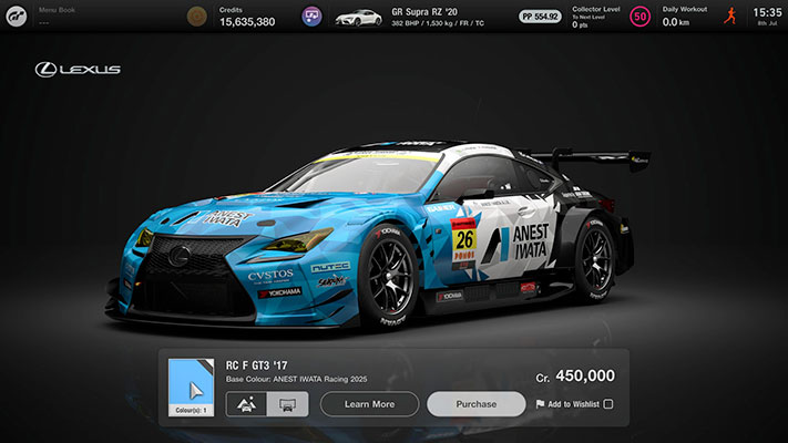 Une nouvelle livrée « ANEST IWATA Racing 2025 » a été ajoutée pour la Lexus RC F GT3 ’17, en vente dans le showroom Lexus.