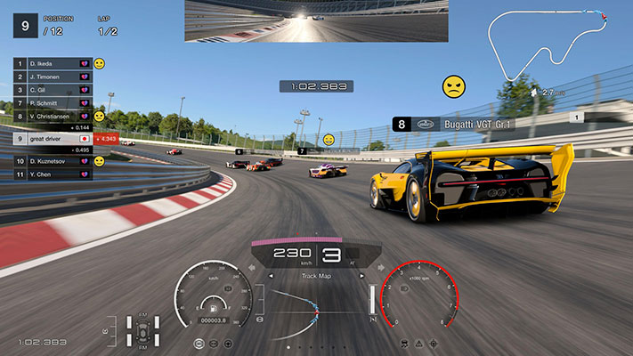 L’IA de course nouvelle génération, « Gran Turismo Sophy », est désormais disponible sur le circuit ci-dessous. Orientez-vous vers les circuits portant l’icône Sophy en « Course rapide » et « Course personnalisée » pour mettre votre maîtrise à l’épreuve face à Sophy.