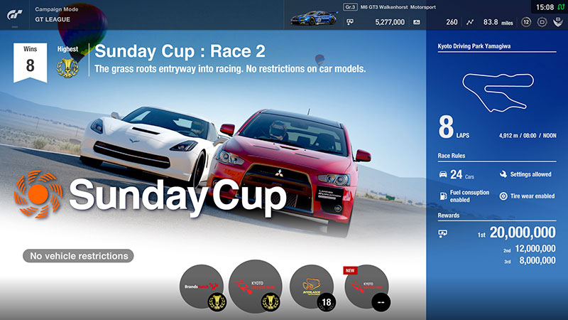 Prévue via une mise à jour gratuite en décembre 2017, la GT League est le mode carrière offline de GT Sport, inspiré du légendaire « GT Mode » des épisodes précédents. Nous y retrouverons donc des compétitions par coupe, allant de débutant à pro et le retour des très appréciées courses d’endurance.