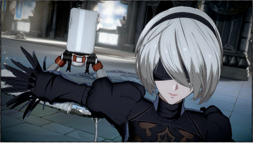 2B est désormais disponible en tant que DLC. Cette addition au casting comprend un avatar de 2B dans le lobby en ligne pouvant être utilisé dans le mode Grand Bruise Legends!, ainsi que des figurines pour le studio.