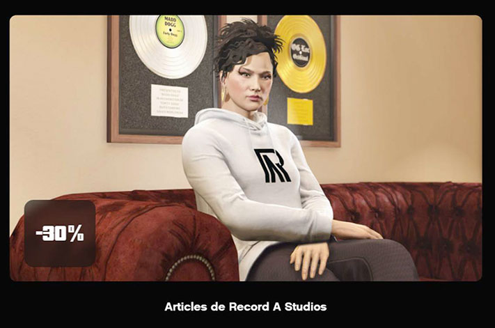 Record A Studios offre également 30 % de réduction sur tous les articles et les vêtements vendus dans sa boutique de souvenirs. Rendez-vous à Record A Studios après avoir terminé le contrat VIP de Dr. Dre pour accéder à cette collection exclusive.