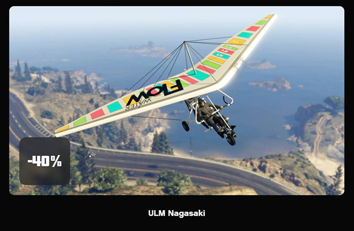 Besoin d’un endroit pour entreposer votre nouvel avion à hélice ? Ou d’une cachette sûre pour cette cargaison de contrebande ? Les hangars et toutes leurs améliorations sont à -40 % jusqu’au 23 mars. Enfin, toute une gamme d’appareils aériens est également en promotion, dont le Mammoth Tula, l’Hydra, le Sea Sparrow et d’autres.