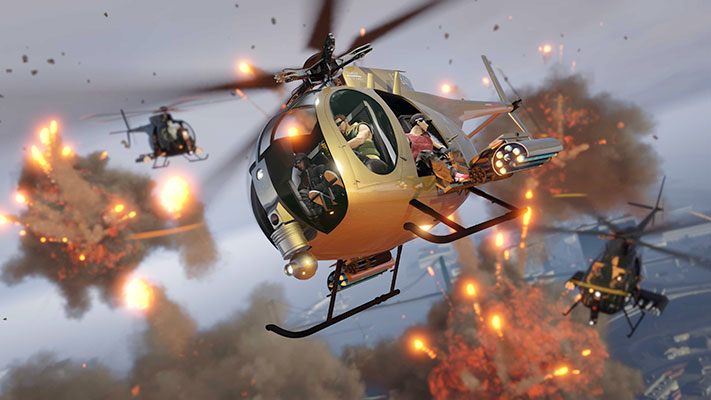 Cran d’arrêt (à -40 %) | Mitraillette tactique | Destructeur de l’infini | Pistolet-mitrailleur | Fusil à double canon | Fusil de précision lourd (à -30 % pour les abonnés à GTA+) | Cocktails Molotov | Mines de proximité | Gaz lacrymogène | Protections