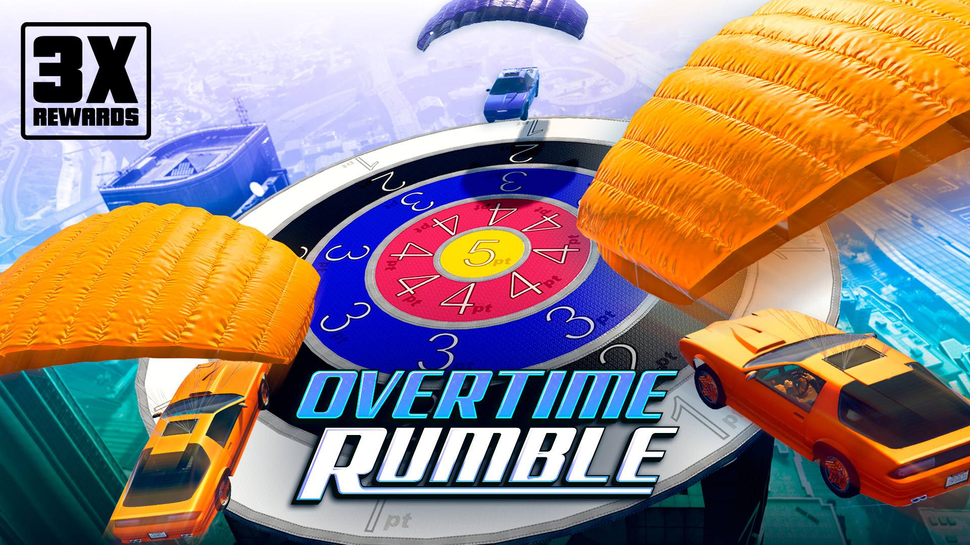 Envolez-vous à bord du nec plus ultra : une Ruiner 2000 équipée d’un parachute. Planez jusqu’à la cible, et si vous parvenez à l’atteindre en un seul morceau, assurez-vous de ne pas laisser vos adversaires vous imiter. N’oubliez pas : les sales coups ne sont pas seulement tolérés, ils sont encouragés. Sauts au but groupés vous rapporte des récompenses triplées jusqu’au 23 septembre.