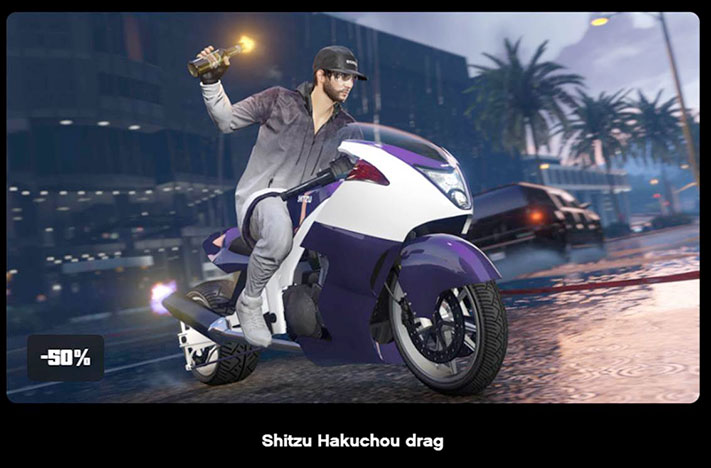 • 50 % de GTA$ et RP bonus dans les missions de vente de motards, les contrats de QG et autres activités rémunérées
