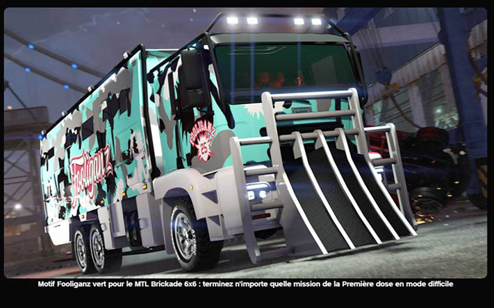 Rejoignez le monde psychédélique en profitant de 30 % de remise sur le MTL Brickade 6×6, qui inclut l’installation du labo d’acide. D’autres véhicules convoités sont également en promotion :