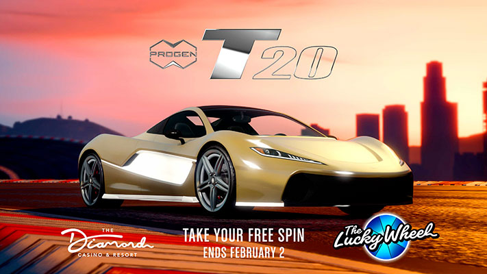 Laissez les clés de votre dernière folie au voiturier, prenez un verre (ou plus) au bar et lancez la roue de la fortune pour gagner des GTA$, des RP, des vêtements, des accessoires, des en-cas et plus. Le grand prix de la semaine est la Progen T20, une hybride qui rugit de façon menaçante une fois à pleine vitesse, tel un énorme bourdon avec un châssis en fibre de verre.