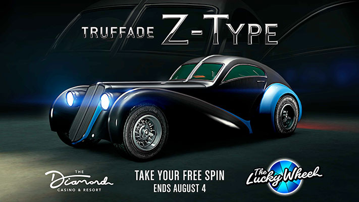 Filez vos clés au voiturier et pénétrez dans le Diamond Casino & Hôtel pour faire tourner la roue de la fortune. Vous pourrez remporter des GTA$, des RP, des vêtements, des en-cas et toutes sortes de récompenses mystère. Le jackpot de la semaine ? La Truffade Z-Type, le symbole de la classe à l’ancienne. Et pour compléter le look, rien de mieux qu’une montre à gousset et un monocle.