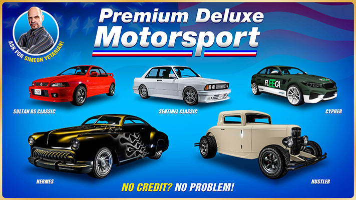 Allez rendre visite à Simeon Yetarian dans son showroom de Premium Deluxe Motorsport pour découvrir les véhicules suivants (mais inutile de lui demander comment il les a dégotés) :