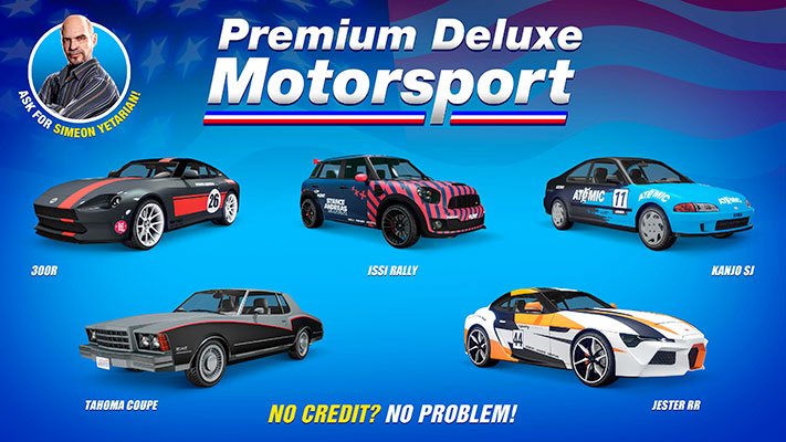 Rendez visite à Simeon Yetarian pour découvrir la sélection de la semaine : essayez pendant cinq minutes toute voiture qui vous aura tapé dans l’œil, comparez les stats ou achetez directement l’un des véhicules en vente.