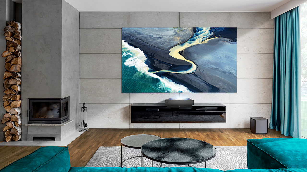 Doté d’un écran anti-reflet de 100’’, ce Laser TV 4K UHD intègre une puce DLP atteignant les 2 800 lumens ainsi qu’une compatibilité HDR. Immersion sonore et fluidité d’image sont au rendez-vous grâce à sa barre de son Dolby Atmos et au compensateur de mouvement MEMC.