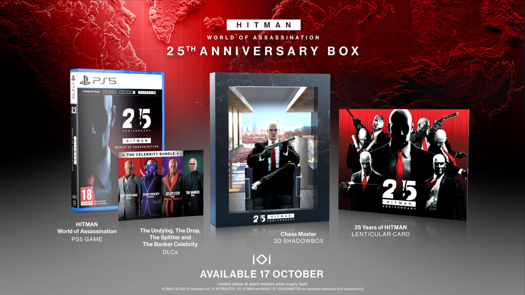 L’édition HITMAN World of Assassination – Anniversary Box sera disponible le 17 octobre, avec des précommandes ouvertes dès aujourd’hui à 49,99 €, et disponible chez une sélection limitée de revendeurs.