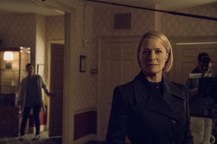 Robin Wright, lauréate d’un Golden Globe et nommée aux Emmy Awards, revient dans le rôle de présidente des États-Unis dans la sixième et dernière saison de la série primée House of Cards.