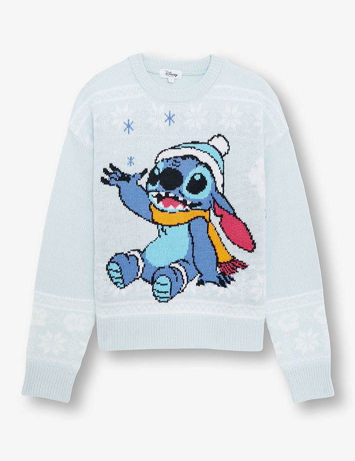 - Pull de Noël Jennyfer bleu stitch – 25,99€ (Jennyfer)