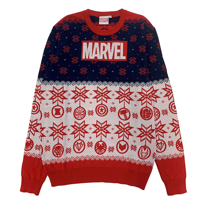 - Pull de Noël Marvel rouge – 29,90€ (Auchan, Legend Icon…)