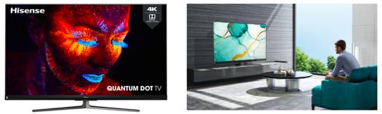 Disponible en 55” et 65”, la Série U8 (U8QF, U82QF) est certifiée UHD Premiumtm et QLED pour une palette de couleurs optimale. Hisense a décidé d’intégrer à cette Série U8 une dalle 100 Hz native afin que chaque scène soit plus fluide et plus précise. Il s’agit de l’équipement parfait pour profiter pleinement des consoles nouvelles générations, des films ou autres programmes en HD. Le tout compatible avec toutes les technologies HDR du moment : HDR Vision, HDR10+. L’audio n’est pas en reste grâce à l’intégration des technologies Dolby Vision et Dolby Atmos, ainsi qu’une barre de son intégrée JBL. Il délivre un son riche et retransmet chaque détail sonore avec précision.
