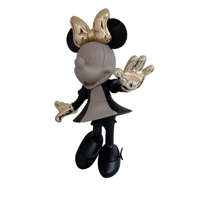 Kelly Hoppen imagine Mickey et Minnie en échelle 1 et en taille intermédiaire, dans une palette de couleurs aux tons neutres taupe et noir. Elle conserve leurs charmes enfantins en leur apportant une touche d’or chromé sur les oreilles. Résolument contemporaines et épurées, ces créations se parent des couleurs iconiques du style de Kelly Hoppen et dévoilent Mickey et Minnie sous un tout nouveau jour.