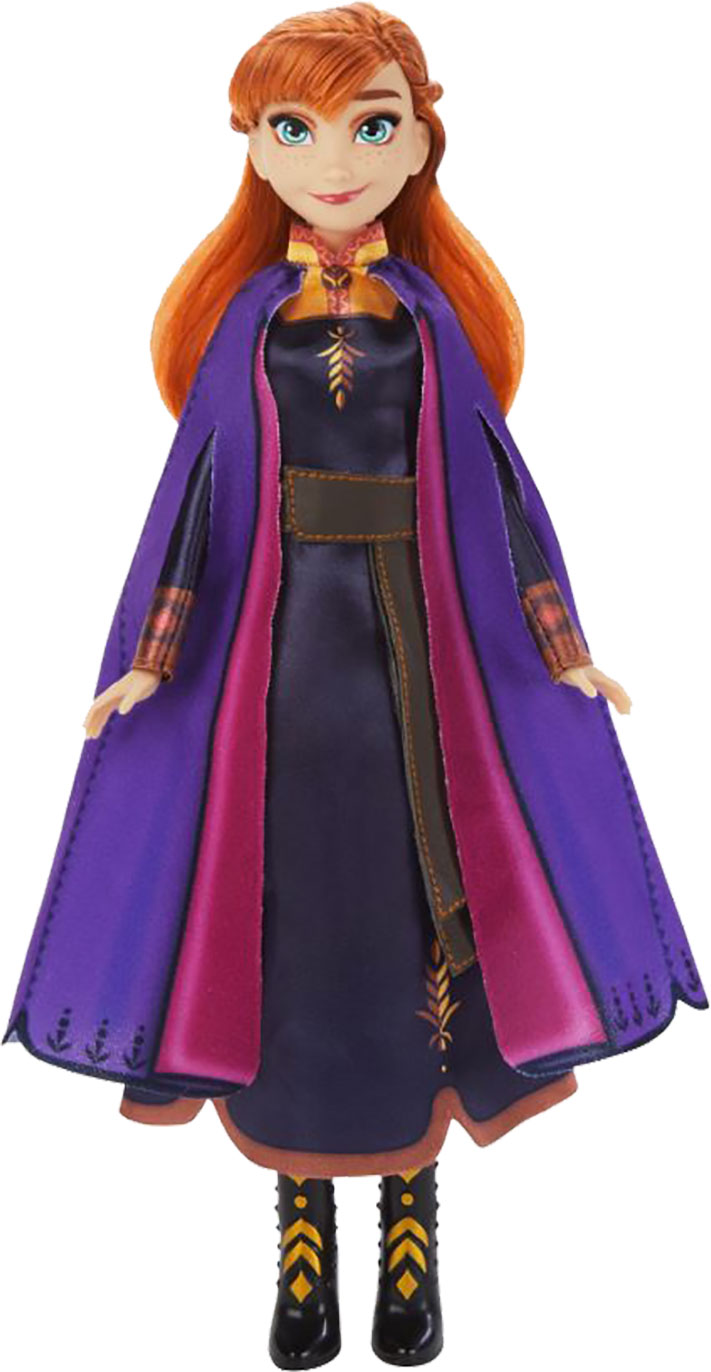 Découvre la toute nouvelle Poupée Elsa de La Reine Des Neiges 2. Elle parle et chante la nouvelle chanson du film et sa jolie robe violette s‘illumine en levant son bras. La poupée mesure 38 cm.