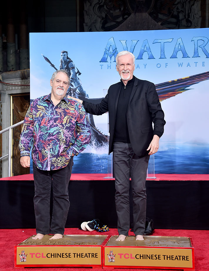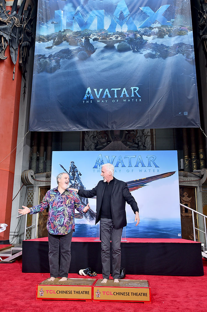 Jeudi dernier à Los Angeles, James Cameron et Jon Landau ont coulé dans le ciment de l’esplanade du mythique TCL Chinese Theatre IMAX l’empreinte de leurs mains et de leurs pieds au cours d’une cérémonie.