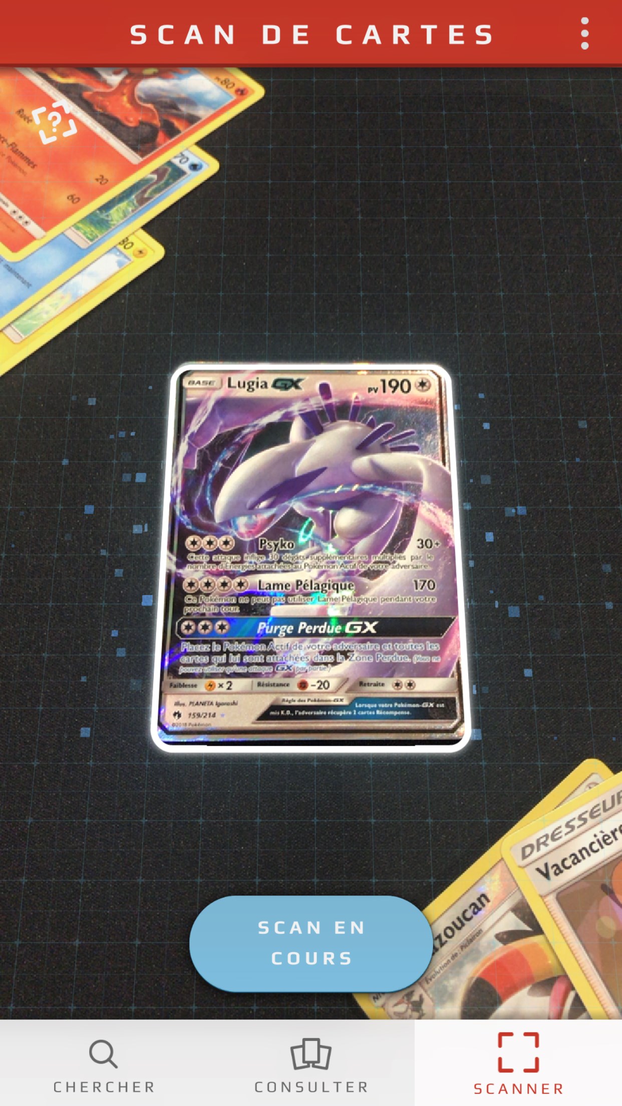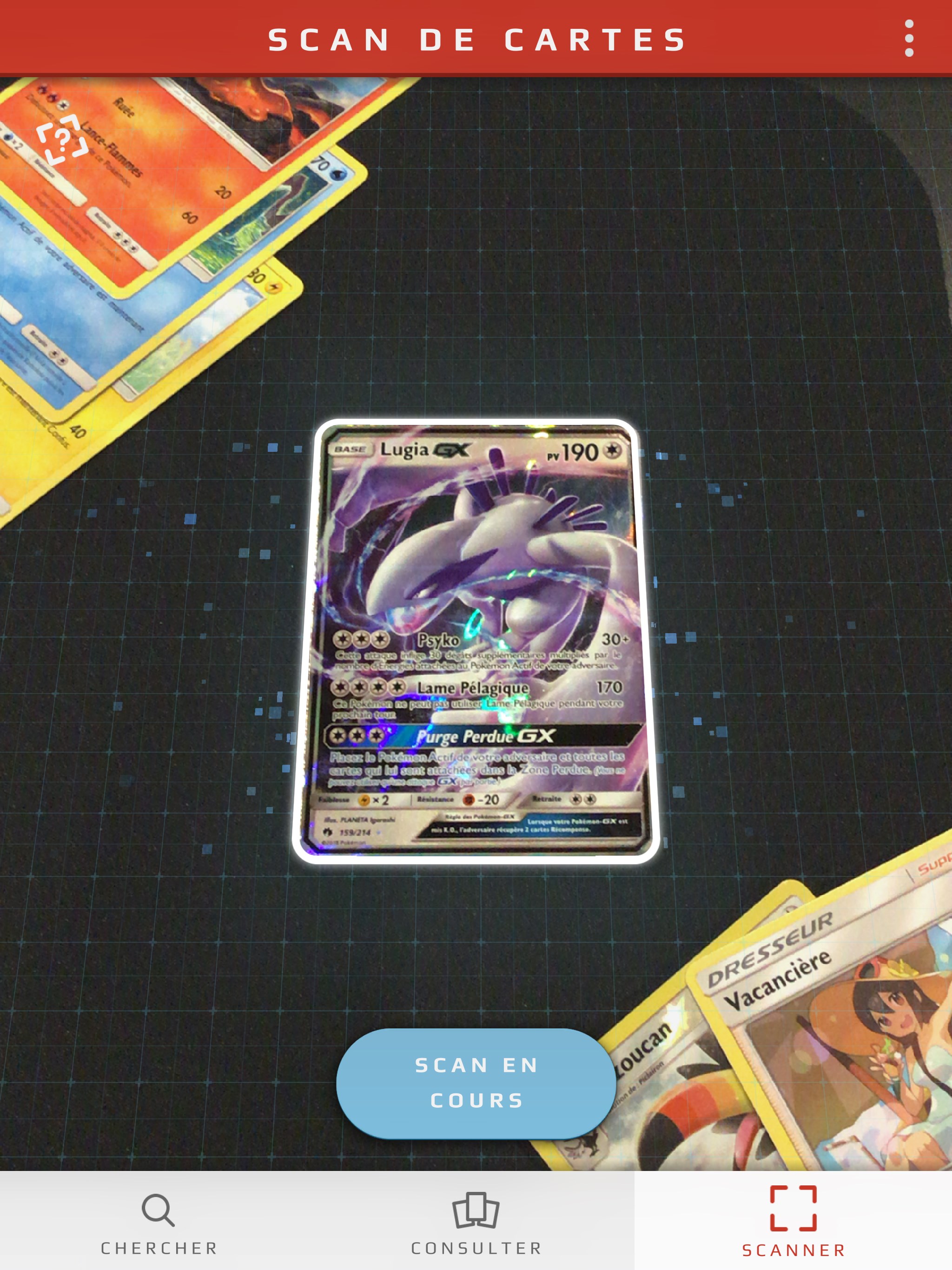 Grâce au Card-Dex du JCC Pokémon, les fans peuvent gérer leur collection de cartes de la série Soleil et Lune du JCC Pokémon. L’appareil photo de leur appareil mobile iOS ou Android permet de scanner des cartes et de les stocker sur l’appareil pour une consultation hors-ligne. L’appli peut même scanner et reconnaître des cartes endommagées ou partiellement masquées, et les cartes sont automatiquement affichées dans la langue choisie par l’utilisateur.
