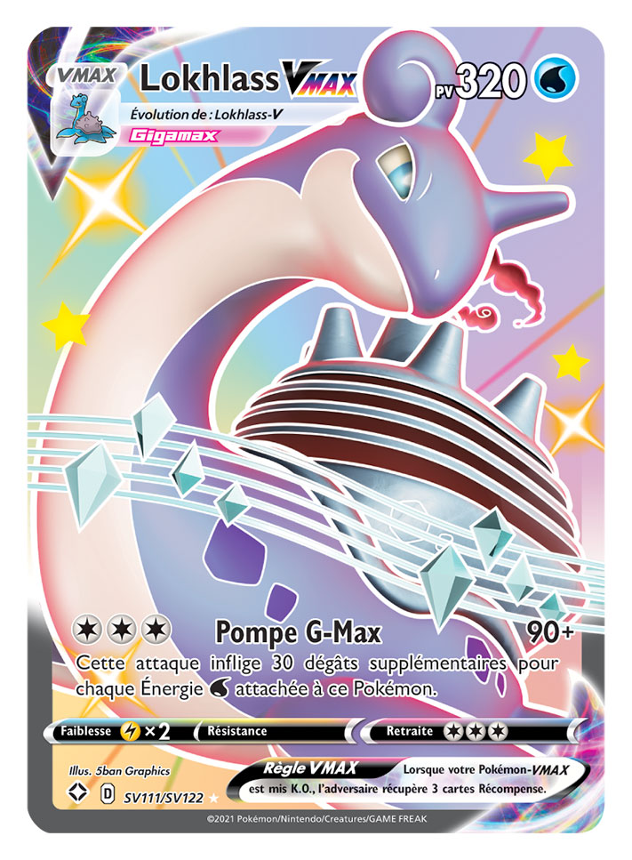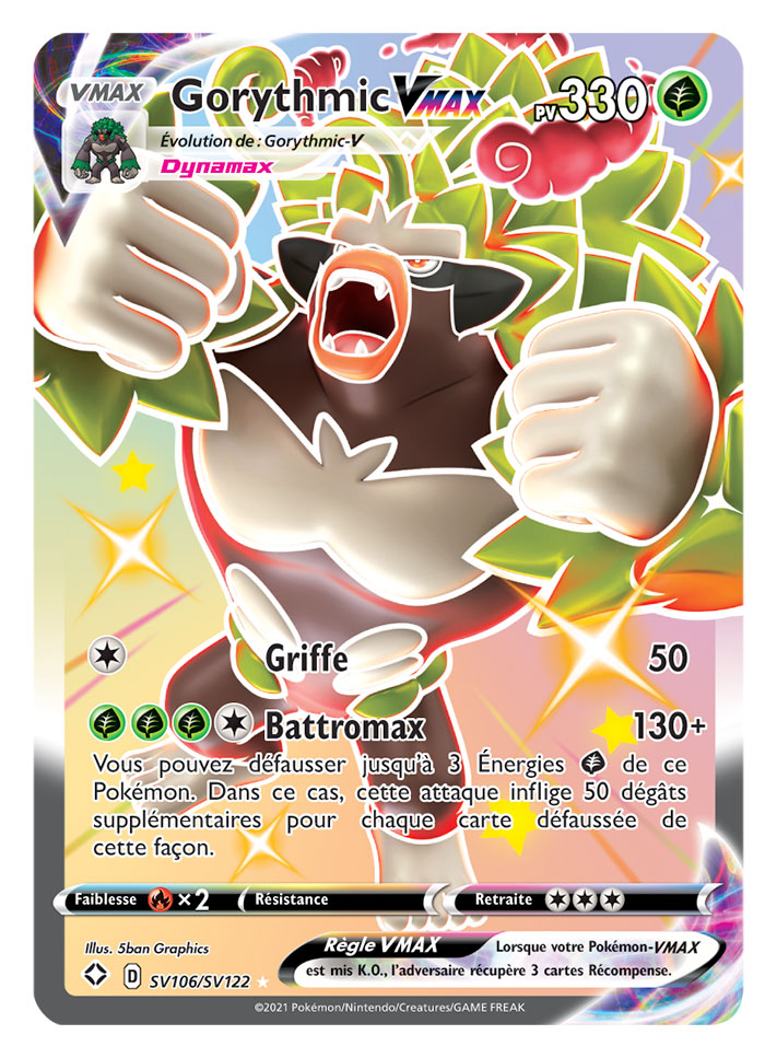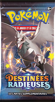 Destinées Radieuses contient plus de 100 Pokémon chromatiques sur de magnifiques cartes texturées, aux côtés de 9 Pokémon-V chromatiques, 7 Pokémon-VMAX chromatiques et 3 Pokémon Magnifiques. Les Dresseurs pourront aussi renforcer leurs decks avec les cartes clés de la série Épée et Bouclier, dont plus de 30 Pokémon-V et Pokémon-VMAX.