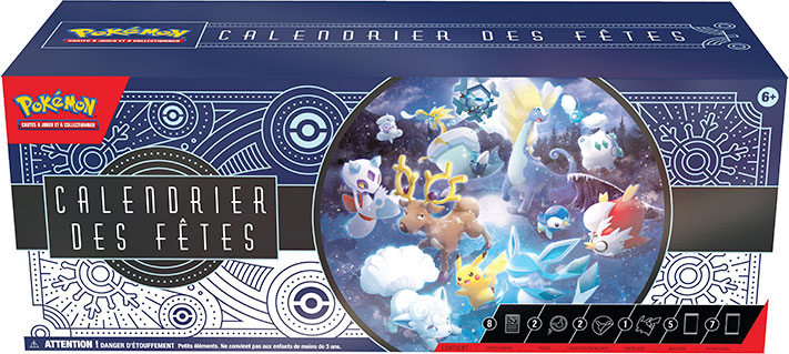 À l’occasion de la saison des fêtes, les fans de Pokémon pourront également trouver le Calendrier des fêtes du JCC Pokémon dans les magasins participants. Disponible pour la première fois en français, le Calendrier des fêtes du JCC Pokémon contient 25 surprises, de cartes brillantes spéciales avec un tampon festif à des boosters et plus encore.