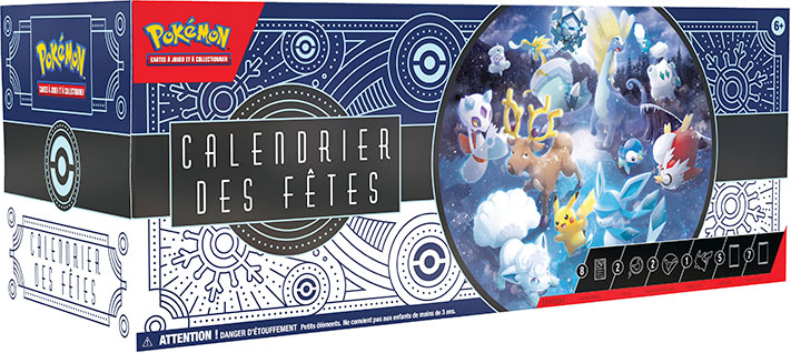 À l’occasion de la saison des fêtes, les fans de Pokémon pourront également trouver le Calendrier des fêtes du JCC Pokémon dans les magasins participants. Disponible pour la première fois en français, le Calendrier des fêtes du JCC Pokémon contient 25 surprises, de cartes brillantes spéciales avec un tampon festif à des boosters et plus encore.