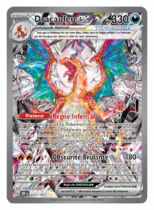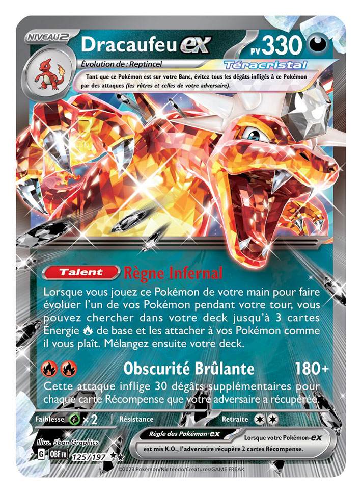 De plus, Écarlate et Violet – Flammes Obsidiennes est maintenant disponible en version numérique via l’ application du JCC Pokémon Live sur iOS, Android, macOS et Windows. Les Dresseurs et Dresseuses peuvent collectionner de nouveaux Pokémon-ex Téracristal dont le type a changé et combattre à leurs côtés, et lors de la connexion, le Passe de combat Écarlate et Violet – Flammes Obsidiennes récompensera les joueurs et les joueuses avec un nouveau deck mettant en vedette Dracaufeu-ex de type Obscurité. Un deck premium supplémentaire avec Terracruel-ex pourra également être déverrouillé en échangeant des Cristaux, gagnés en accomplissant des quêtes quotidiennes.