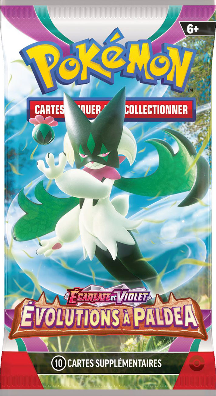 JCC Pokémon Écarlate et Violet – Évolutions à Paldea sera disponible à partir du 9 juin 2023 dans les boosters, les Coffrets Dresseur d’élite et les collections spéciales dans les magasins participants du monde entier.