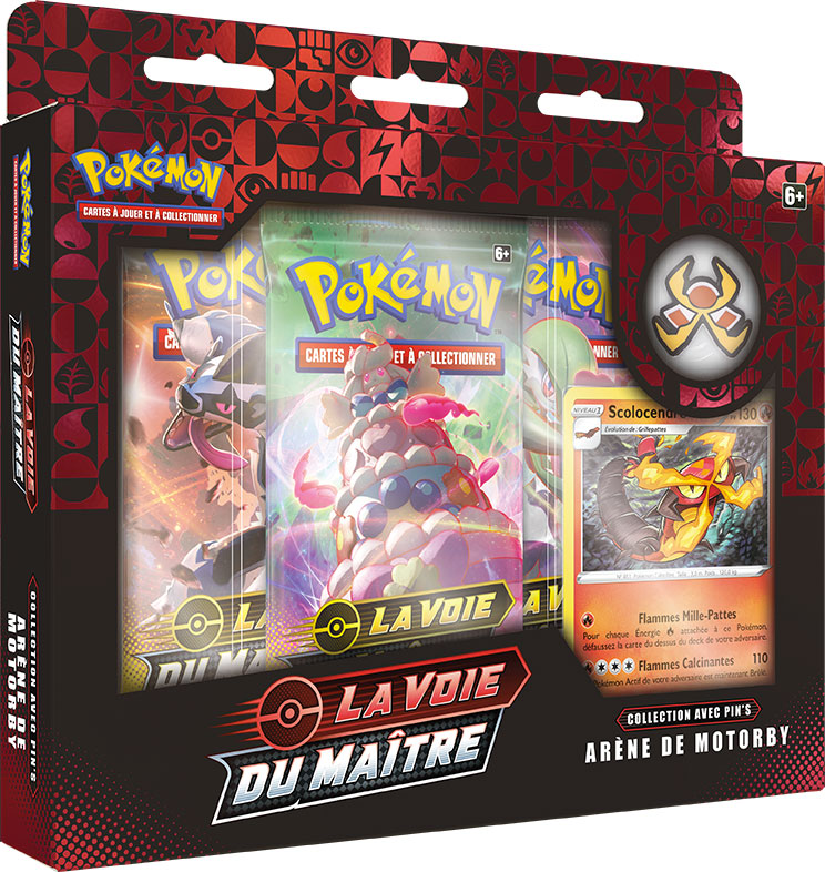 Il y a 6 versions de la Collection avec pin’s La Voie du Maître, chacune sur le thème d’un Champion d’Arène de la région de Galar différent. Vous y trouverez le pin’s de l’Arène correspondante ainsi qu’une carte brillante. Les Collections avec pin’s de Percy de l’Arène de Greenbury, de Donna de l’Arène de Skifford et de Kabu de l’Arène de Motorby seront disponibles le 25 septembre 2020. Les Collections avec pin’s de Sally de l’Arène de Corrifey, de Peterson de l’Arène de Smashings et de Roy de l’Arène de Kickenham seront disponibles le 13 novembre 2020.