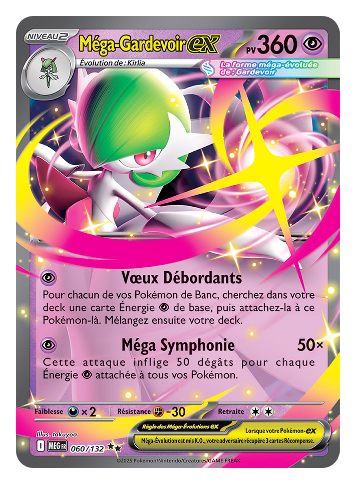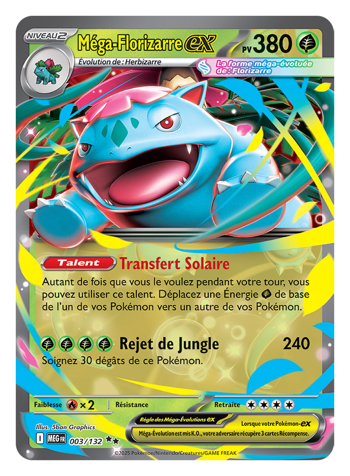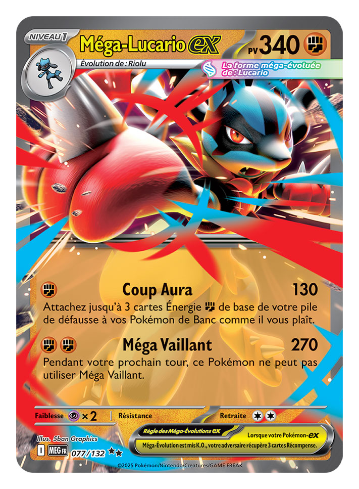Première extension de la série Méga-Évolution, l’extension Méga-Évolution marque le retour très attendu des Pokémon Méga-Évolution dans le JCC Pokémon. Les joueurs et joueuses peuvent dès maintenant découvrir et collectionner des cartes de puissants Pokémon-ex Méga-Évolution, dont Méga-Lucario-ex et Méga-Gardevoir-ex.