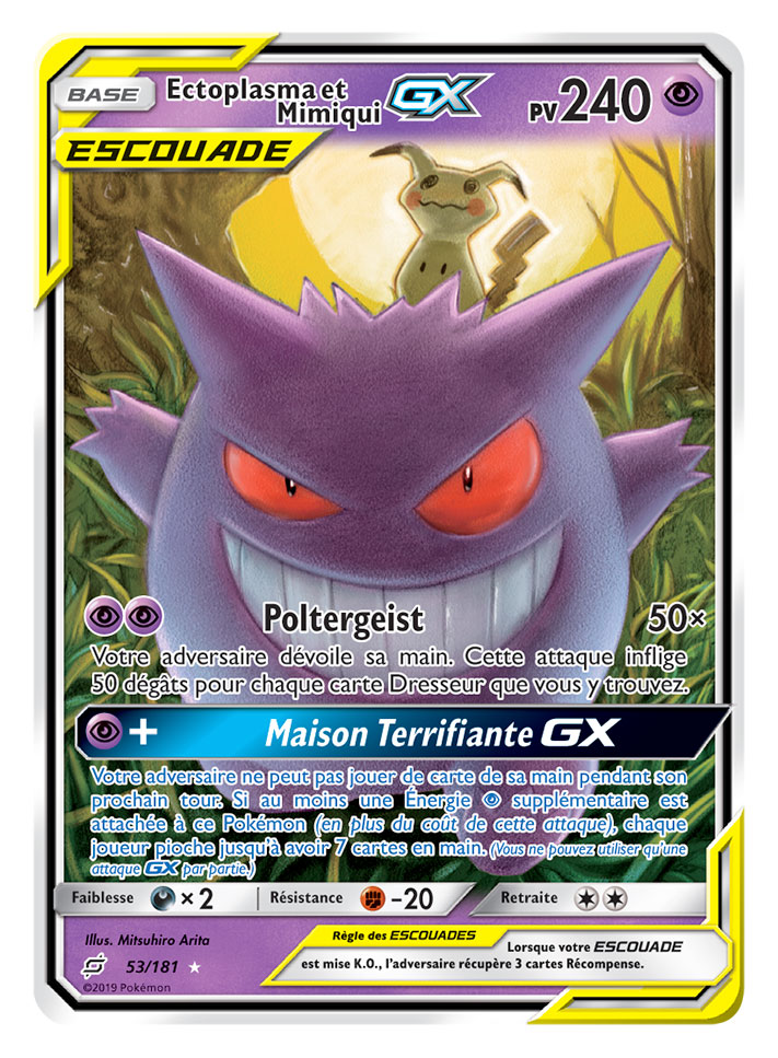 Les Pokémon-GX ESCOUADE permettent une nouvelle mécanique de jeu offrant des combats à hauts risques et à fortes récompenses. Ces cartes possèdent une puissance et des Points de Vie sans pareil, mais lorsqu’une ESCOUADE est mise K.O., l’adversaire remporte trois cartes Récompense.
