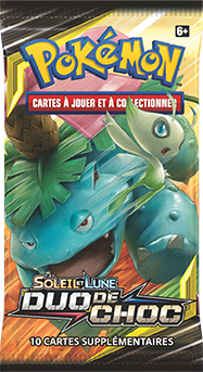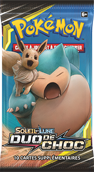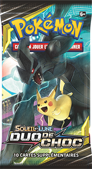 Partout dans le monde, l’extension Soleil et Lune – Duo de Choc, disponible dans des boosters, decks à thème, et collections spéciales, propose les très attendues cartes ESCOUADE qui offrent des équipes de combat dynamiques telles que Pikachu et Zekrom-GX, ou Évoli et Ronflex-GX.