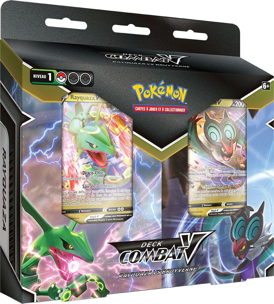 Rayquaza-V et Bruyverne-V sont les stars des nouveaux Decks Combat-V. Cette sortie fait suite à l’arrivée des Pokémon de type Dragon dans la série Épée et Bouclier du JCC Pokémon avec l’extension Épée et Bouclier – Évolution Céleste.