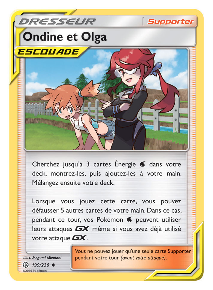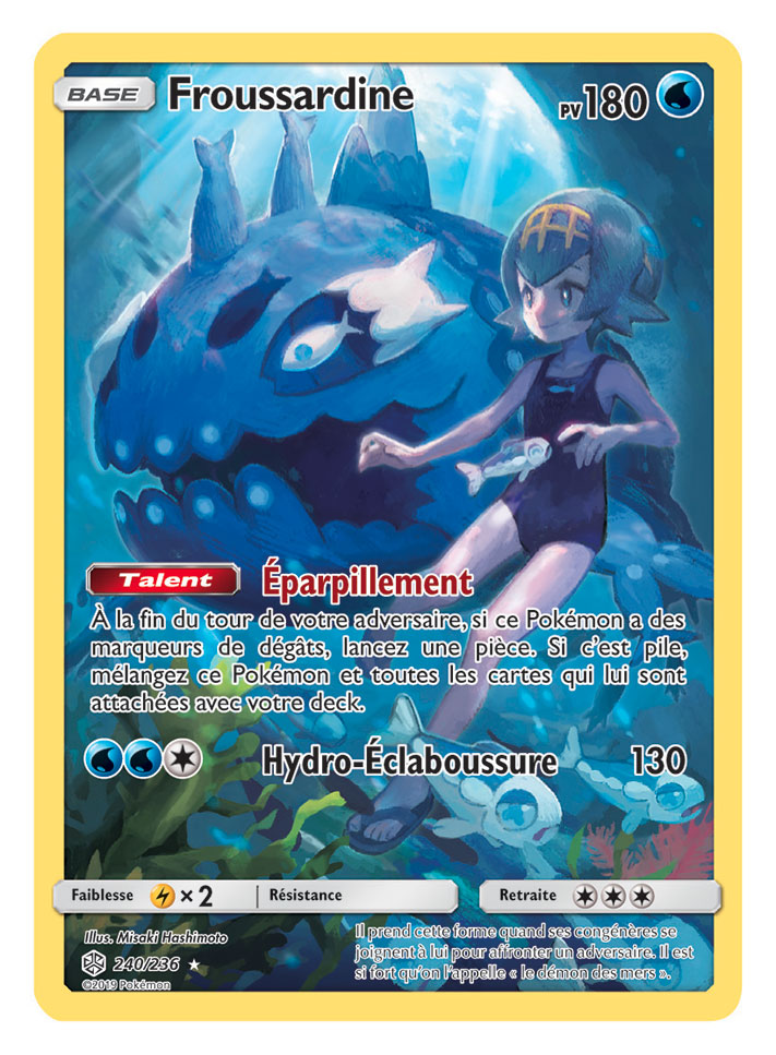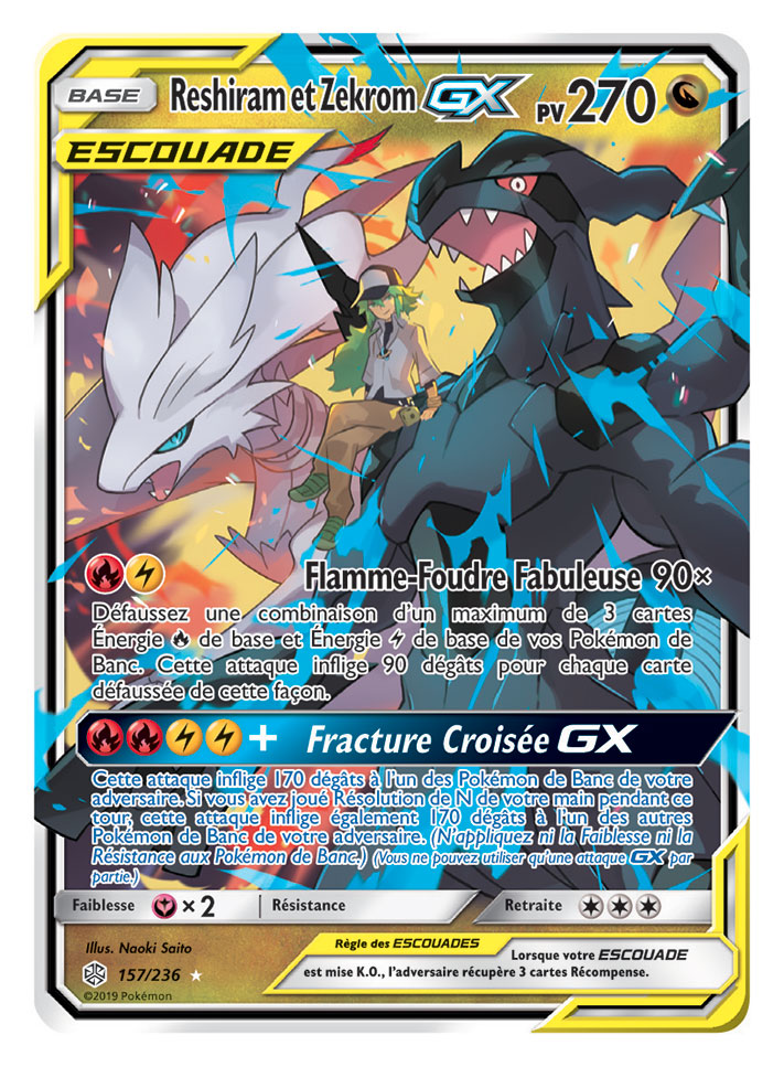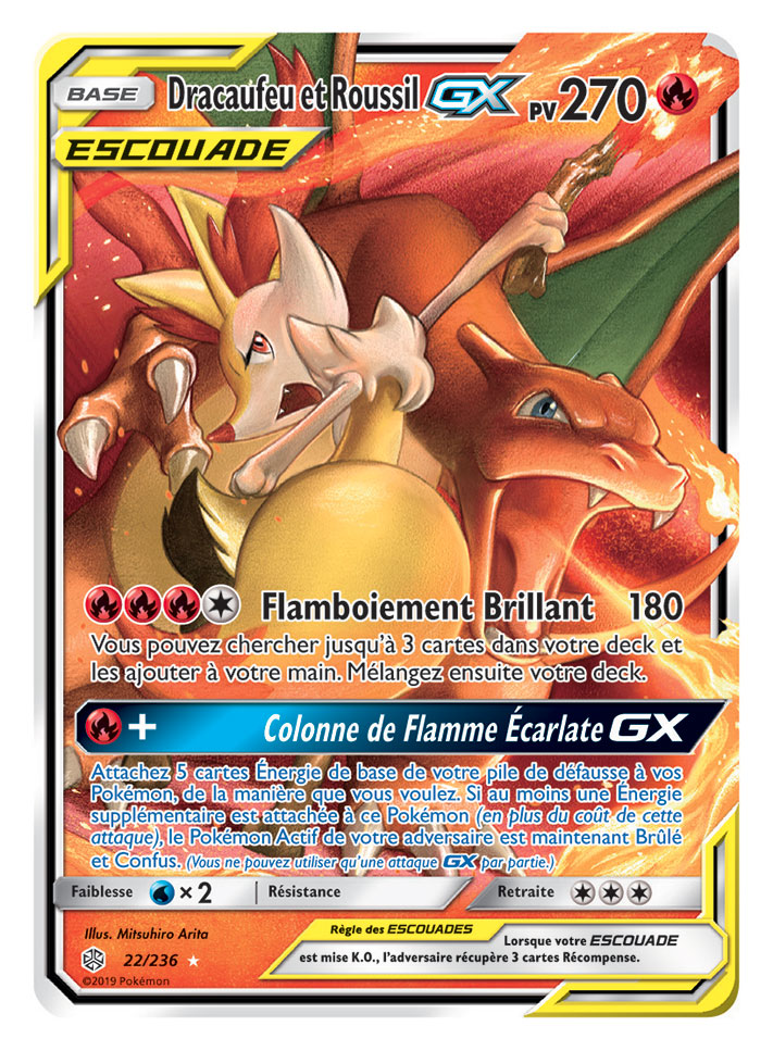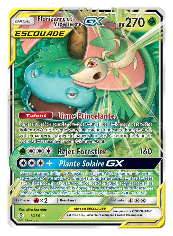 Deux super trios ESCOUADE passent sur scène dans Soleil et Lune – Éclipse Cosmique, que les fans auront autant de plaisir à collectionner qu’à utiliser en combat. Des Pokémon fabuleux et légendaires sont associés sur la carte Arceus, Dialga et Palkia-GX, qui s’avèrera très utile dans tous les decks. Et ne vous fiez pas à leur apparence toute douce : le trio Togepi, Mélo et Toudoudou-GX ne manque pas de puissance !