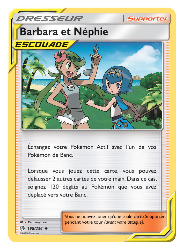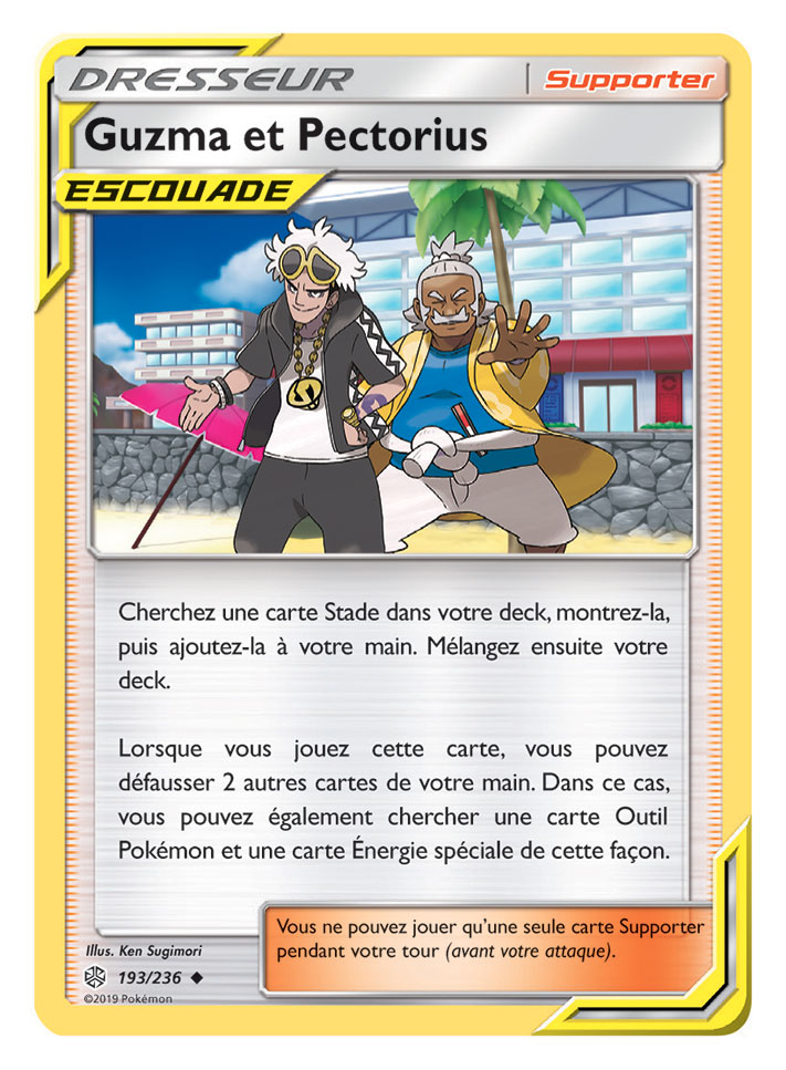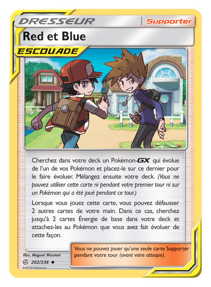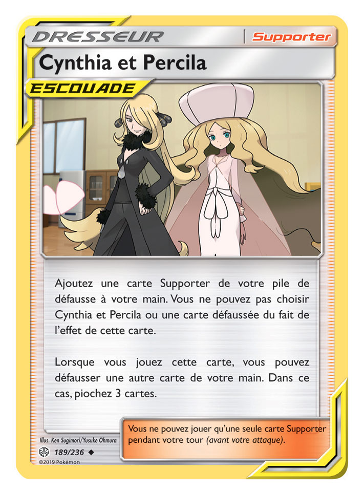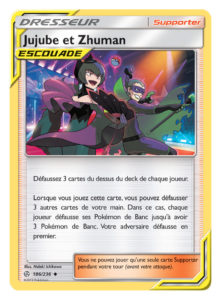 Cette extension propose également de nouvelles cartes Supporter ESCOUADE rassemblant deux personnages sur une même carte Dresseur, tels que Red et Blue, ou Cynthia et Percila. Des versions spéciales de certaines cartes sont aussi incluses dans Soleil et Lune – Éclipse Cosmique, et elles proposent des illustrations de Pokémon avec leurs Dresseurs.