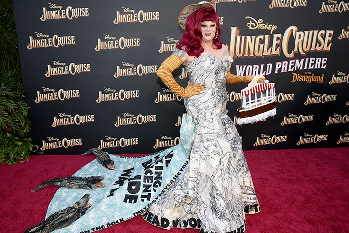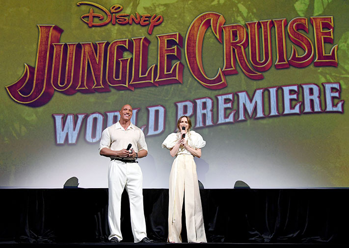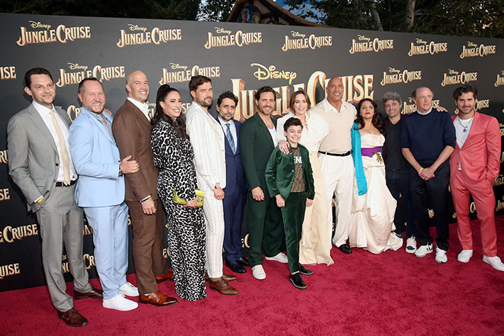 Les comédiens Dwayne Johnson, Emily Blunt, Edgar Ramírez, Jack Whitehall et Veronica Falcón, le réalisateur Jaume Collet-Serra et les producteurs John Davis, John Fox, Hiram Garcia, Dany Garcia et Beau Flynn ont foulé le tapis rouge exceptionnellement dressé autour de l’attraction « Jungle Cruise » – l’une des plus populaires des parcs Disney – et dont le circuit a servi de point de départ au scénario écrit par Michael Green, Glenn Ficarra et John Requa.