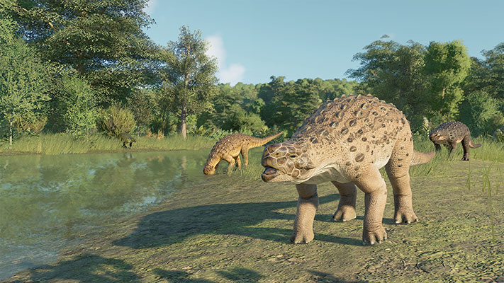 - Minmi: un petit dinosaure ressemblant à un réservoir, appartenant à la famille des ankylosaures. Contrairement aux autres ankylosaures, il possède des plaques osseuses orientées horizontalement sur les côtés de son dos, qui le protège bien contre les prédateurs.