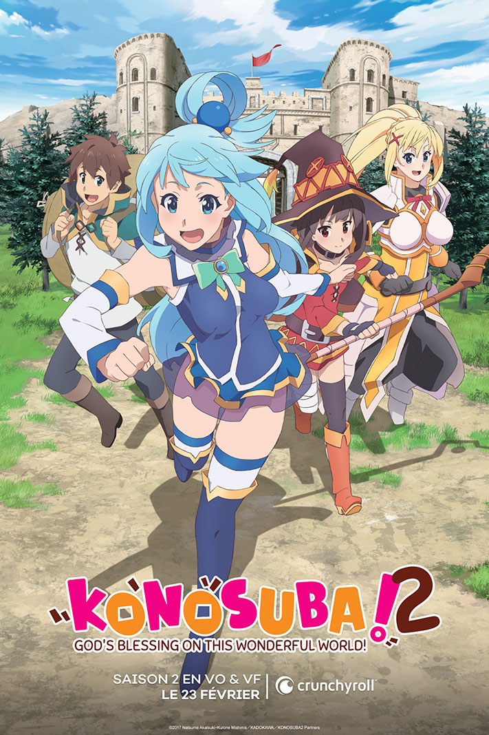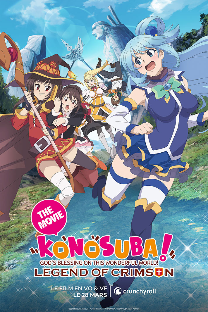 La première saison de KONOSUBA sera diffusée sur Crunchyroll le 16 février prochain. La seconde saison sera disponible le 23 février, puis le film « Legend of Crimson » sortira quant à lui le 28 mars 2023.