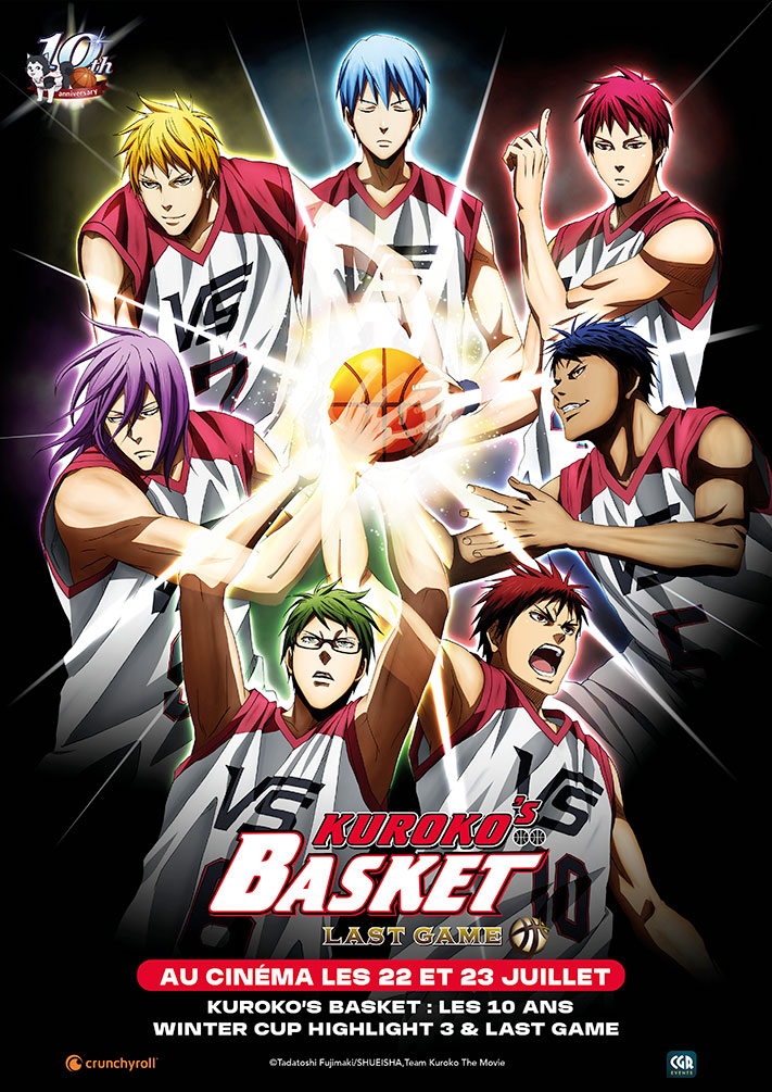 À l’occasion du 10e anniversaire de la série animée de Kuroko’s Basket, Crunchyroll et CGR Events proposent les 22 et 23 juillet 2022 deux longs métrages : Winter Cup Highlight 3 (film récapitulatif de la saison 3, la préférée des fans) et Last Game (film concluant la saga, jamais diffusé en salle).