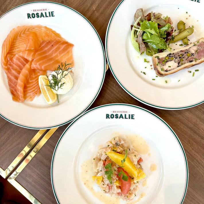 Ouvert dès 8h30 pour le petit-déjeuner et jusqu’en fin de soirée, Brasserie Rosalie satisfera les papilles des amateurs de gastronomie française, avec des classiques tels que les escargots de Bourgogne, la soupe à l’oignon gratinée, le cocktails avocat-crevettes, et une large palette d’huîtres et de fruits de mer. Parmi les spécialités, notons l’élégante soupière de homard en croûte, le fondant de bœuf braisé, la choucroute Rosalie, la blanquette de veau à l’ancienne ou encore les moules au Chablis à la crème d’Isigny. Le comptoir extérieur, adossé à la brasserie, propose également une offre de sandwichs, salades, jus frais et pâtisseries françaises à emporter, pour manger sur le pouce.