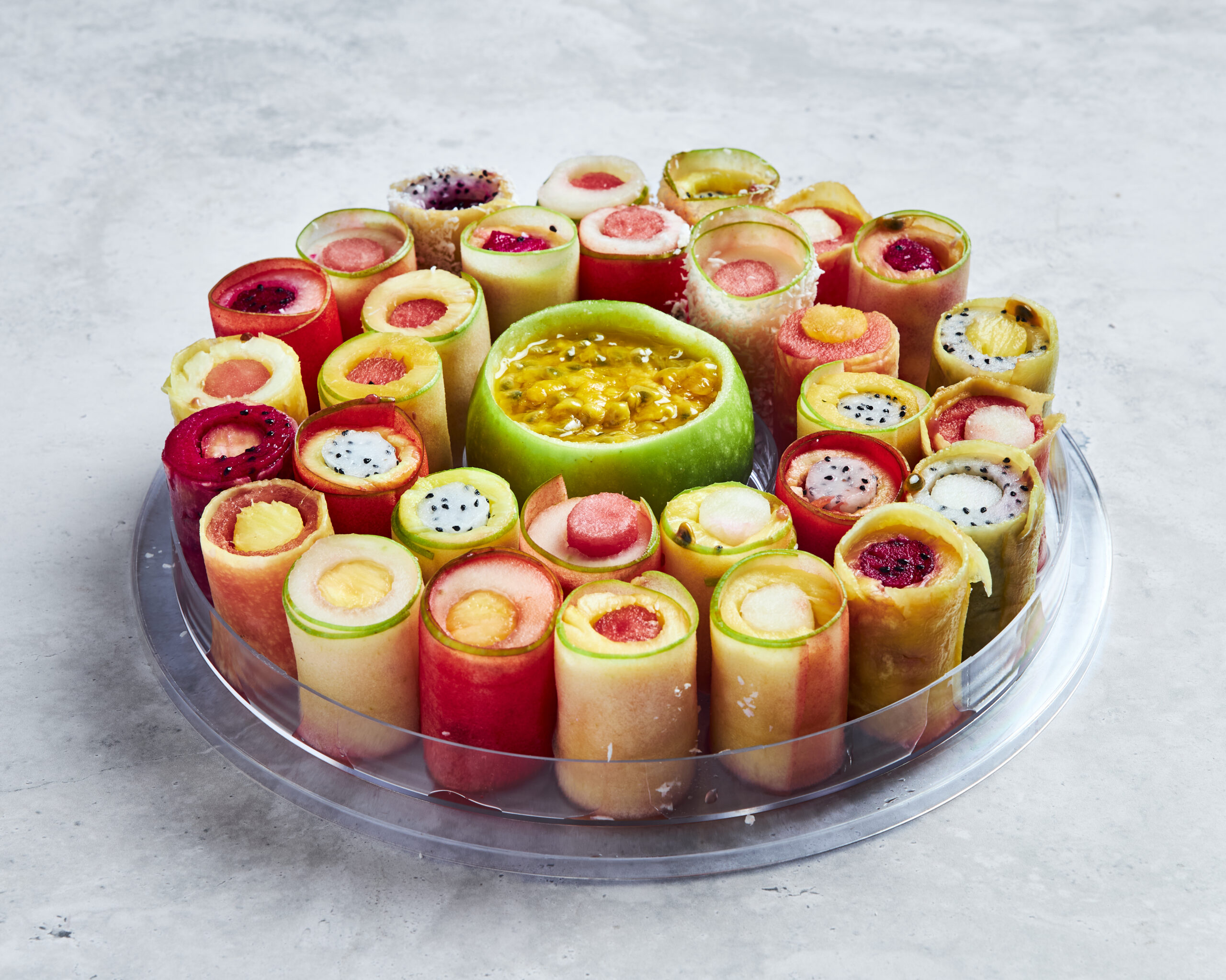Les créations prennent toutes les formes : sculptures thématiques sur mesure pour événements corporate, gâteaux 100% fruits, corbeilles premium pour particuliers et entreprises, jus frais pressés minute. Atef a même imaginé les « sufruits » ou sushis de fruits, qui est devenu au fil du temps son concept « signature » qui mêlent l’esthétique japonaise à la matière première la plus française qui soit. Comme il le dit lui-même :
