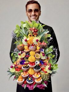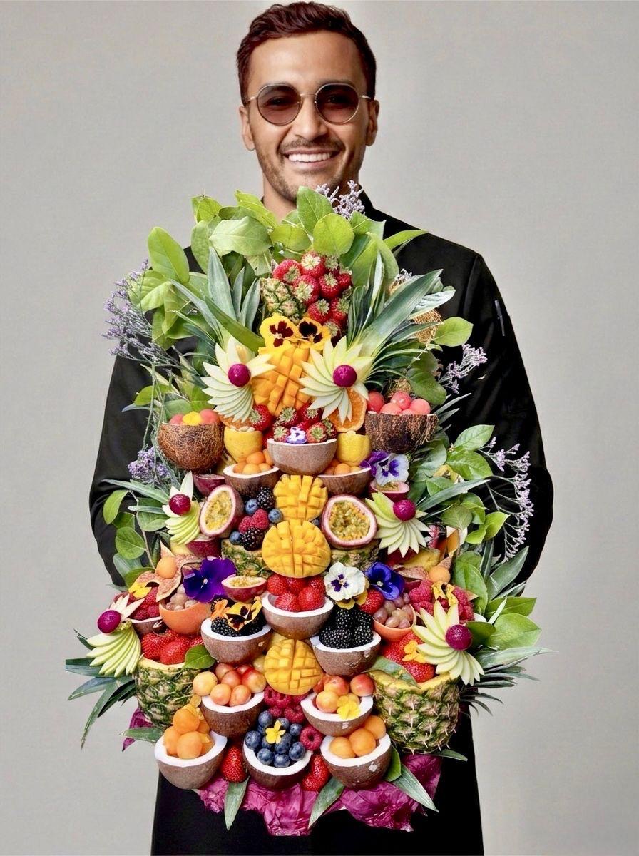 Ancien chef pâtissier formé par un des Meilleurs Ouvriers de France, Atef manque rapidement de créativité derrière l’étal. Il s’enferme dans son laboratoire, expérimente, invente. Il transforme pastèques, mangues et ananas en pièces montées spectaculaires, sculptures monumentales, gâteaux 100% fruits sans sucre ajouté, sans colorant, sans artifice : uniquement la matière brute, sublimée. Ses premières commandes arrivent vite : des pianos, des voitures, des sacs de luxe, reproduits uniquement à base de fruits. Chaque commande est alors vécue comme un défi. Puis l’Élysée le sollicite. Le reste est histoire.